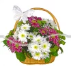 Волшебная корзинка с нежными хризантемами создаст романтичное настроение. Чудесная декоративная бабочка на ручке является стильным дополнением этого флористического шедевра. Сочетание белых, фиолетовых и зеленых оттенков делают корзинку отличным подарком к любому поводу — будь это признание в любви или знак внимания для дорогой мамы. Корзинка украсит интерьер и будет долго радовать вас своим изысканным видом.
