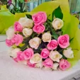 Роза белая (кремовая) и розовая 70 см - 21 шт , упаковка фетр.