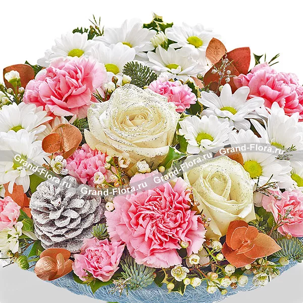 Новогодняя мечта - букет с розами и хризантемами, новогодний декор